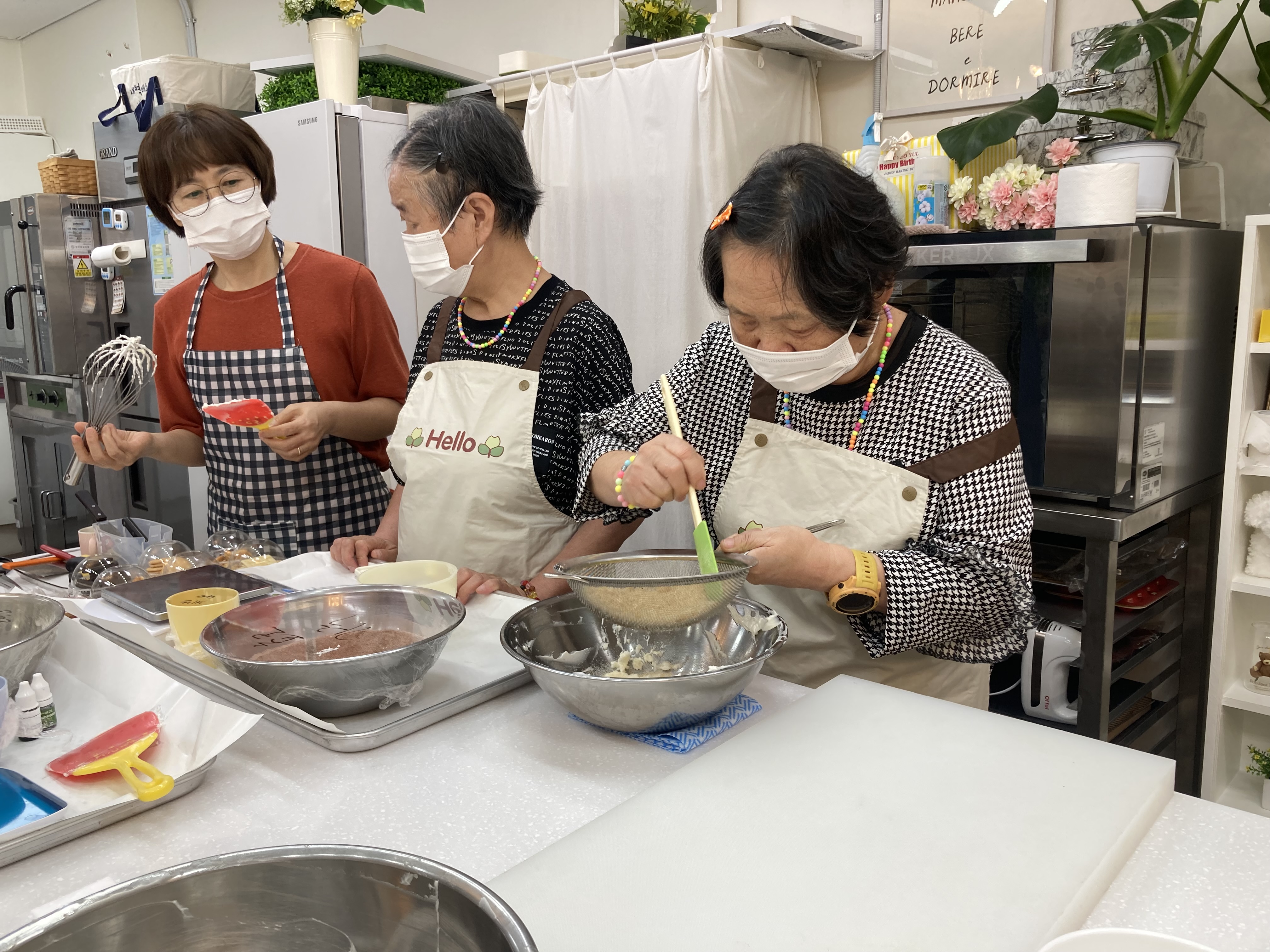 재료 계량, 반죽, 토핑, 오븐 조리까지 전 과정을 직접 수행하시며 실질적인 제빵 기술을 익히셨습니다.
